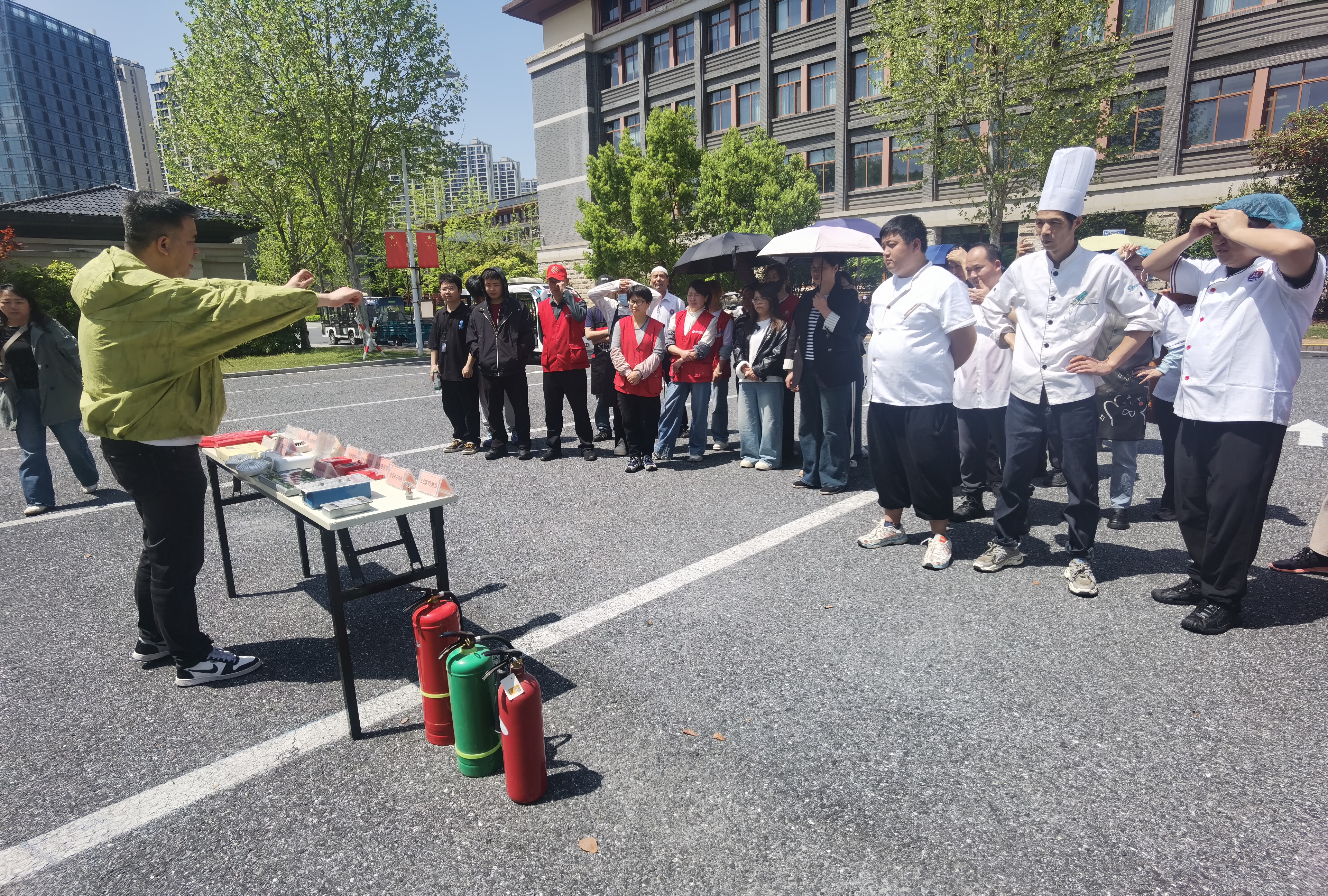 为进一步增强后勤服务人员的消防安全意识,提升报警求助、初期火灾扑救与应急疏散能力,切实保障校园师生生命财产安全,4月10日中午,后勤管理处特邀学校保卫处叶闽江老师,在南门区域为食堂、商铺等重点场所的工作人员开展了一场内容丰富、贴近实战的消防技能培训。
